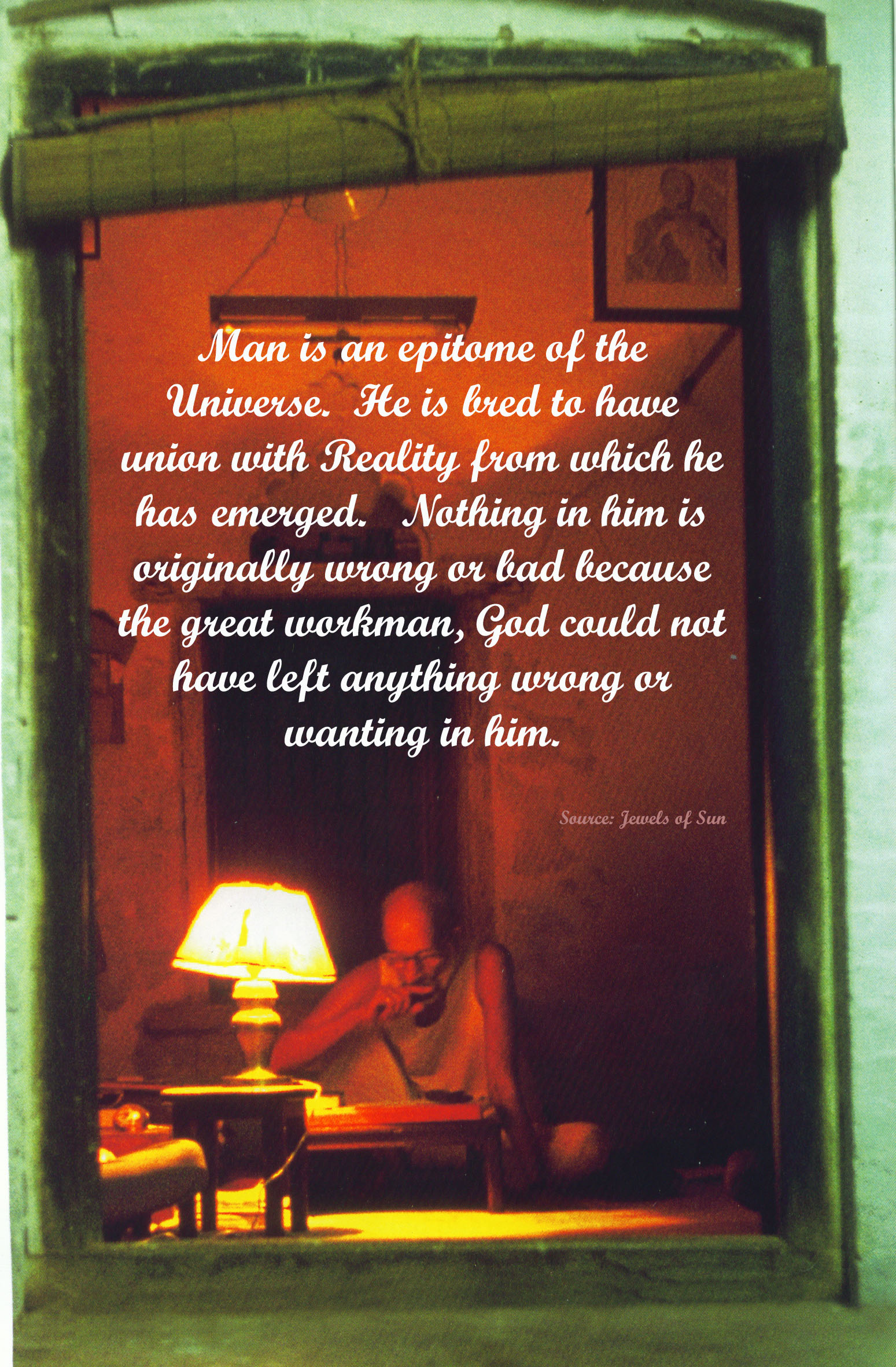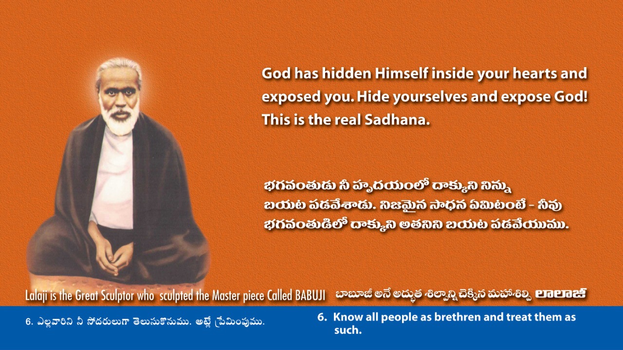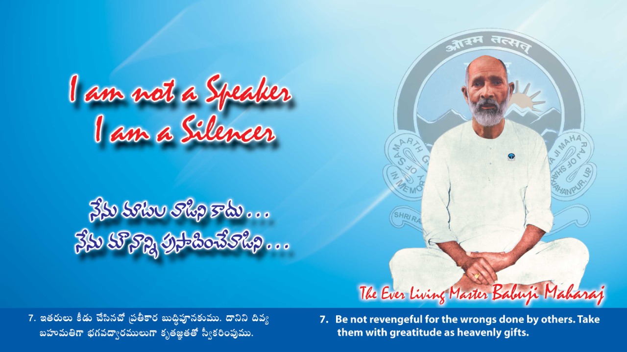 We want no name - We want to be an action without a form & fame. Through our Guru's will, the desire for Name & Fame has not yet crept into our hearts and we dare to say never will. We are instruments and he is the operator. Through these (A team of dedicated Abhyasis) He - Our Divya Gurudev Babuji Maharaj rousing the Spiritual instint in thousands of "Hearts" on this planet earth.