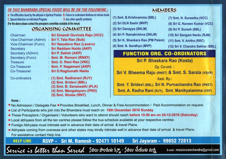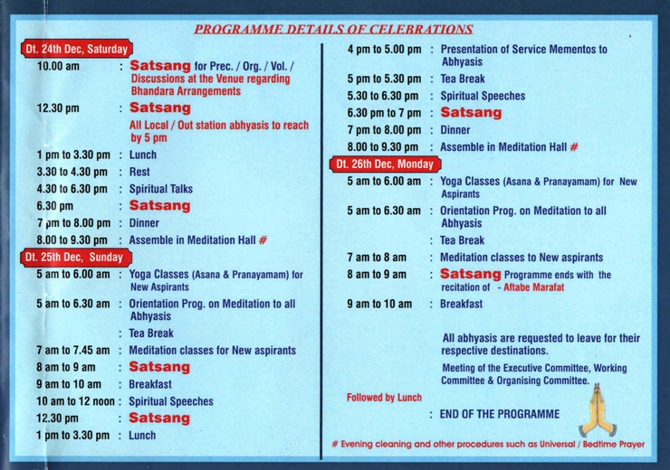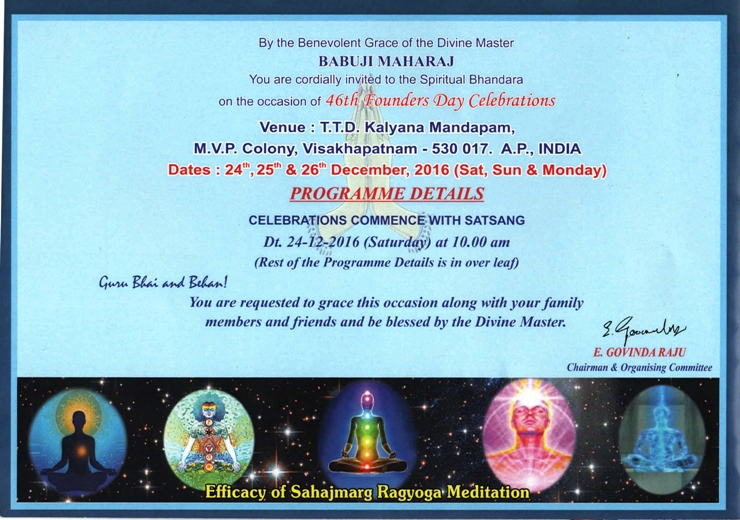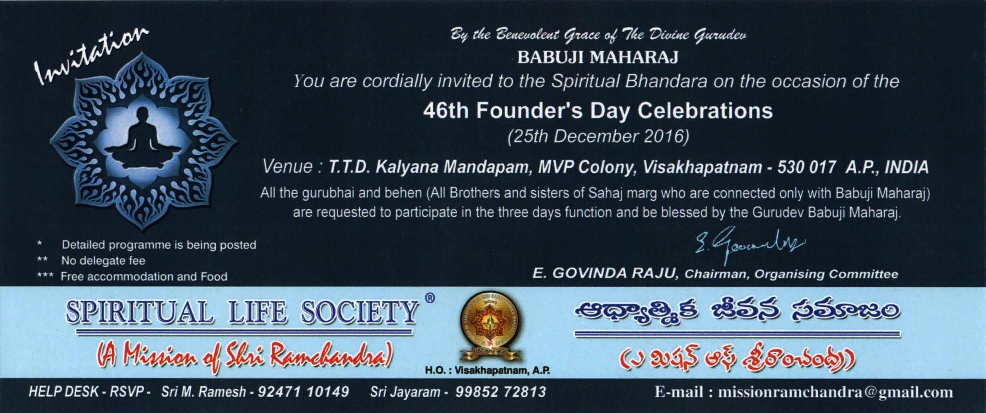 We want no name - We want to be an action without a form & fame. Through our Guru's will, the desire for Name & Fame has not yet crept into our hearts and we dare to say never will. We are instruments and he is the operator. Through these (A team of dedicated Abhyasis) He - Our Divya Gurudev Babuji Maharaj rousing the Spiritual instint in thousands of "Hearts" on this planet earth.