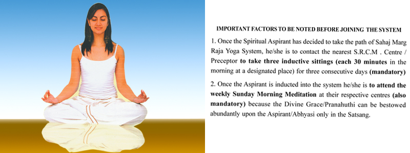 SAHAJ MARG RAJA-YOGA MEDITATION is aided by PRANAHUTI TRANSMISSION which is the most wonderful feature of this system. The Divine Master by the application (Transmission) of the original Divine Power / Central Power / Yogic Power / Cosmic Power etc., is not a New Phenomenon but an age old yogic process which was in practice by all our ancient Rushis & Masters.